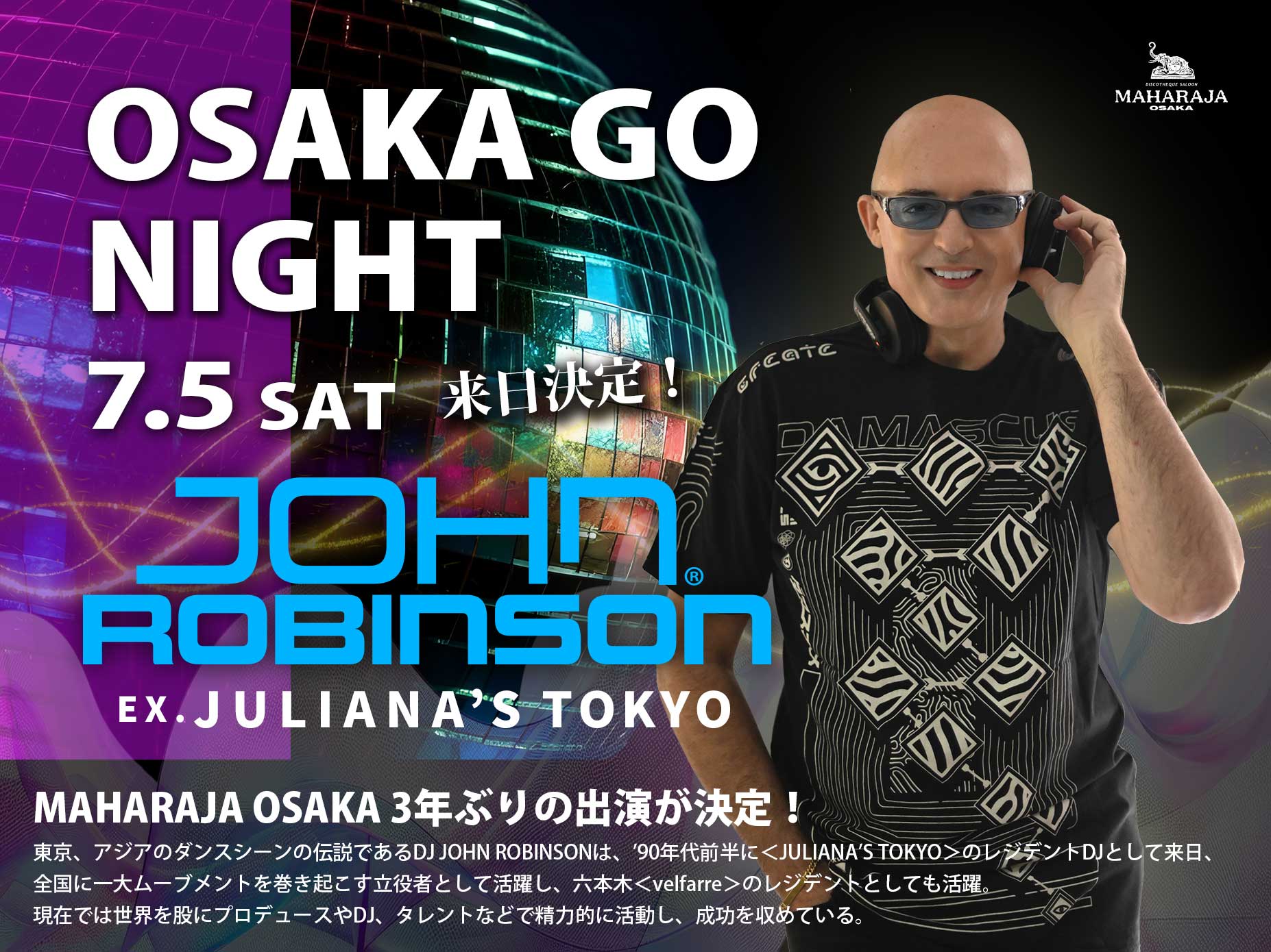 公開日時: 2025年6月16日1854 × 1390 (JOHN ROBINSON 7月5日(土)出演決定のお知らせ)